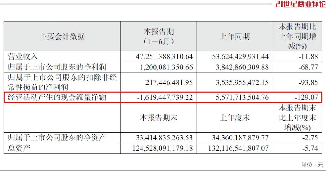 上半年,公司的经营活动现金流净额为-16.19亿元,减少71.91亿元。到6月末,其账面现金为104亿元,资产负债率为73.17%。