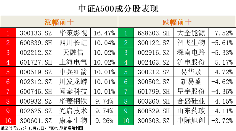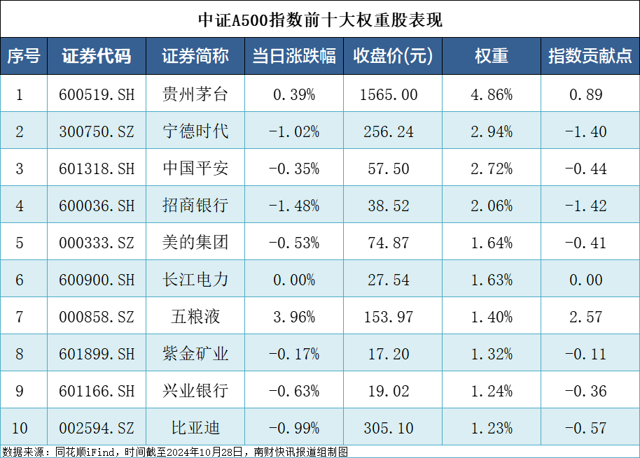 10月28日,中证A500指数(000510.CSI)收涨0.41%,报4674.82点。