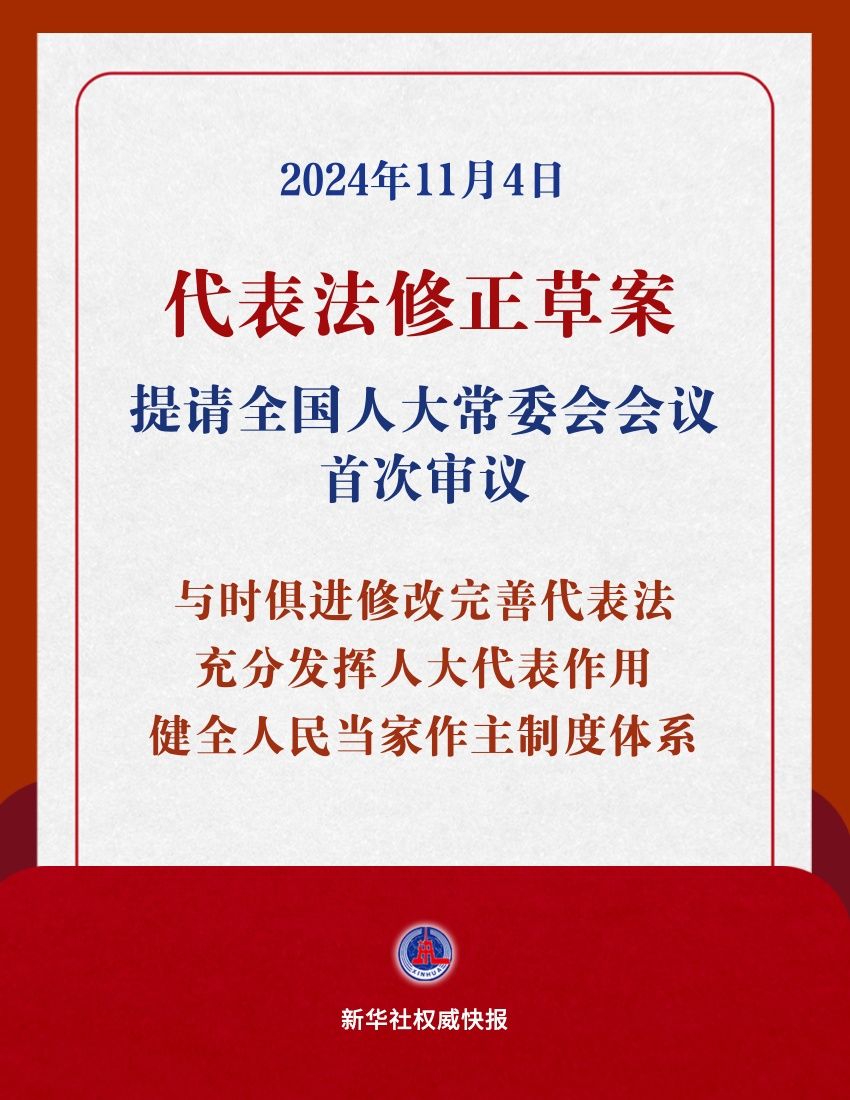 《中华人民共和国全国人民代表大会和地方各级人民代表大会代表法(修正草案)》11月4日提请十四届全国人大常委会第十二次会议首次审议,这是该法自1992年通过施行以来第四次进行修改。代表法修正草案的主要内容包括:充实总则部分规定,拓展和深化“两个联系”制度机制,完善人大代表工作能力建设有关规定,完善代表在本级人民代表大会会议期间的工作有关规定,完善代表在本级人民代表大会闭会期间的活动有关规定,完善代表执行职务的保障有关规定,完善代表议案、建议办理机制,完善代表履职监督管理有关规定,适应监察体制改革需要补充相关内容。