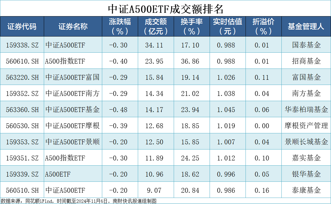 成交金额方面,9只ETF产品在10亿元以上,其中国泰中证A500ETF超过30亿元,招商A500指数ETF突破20亿元。