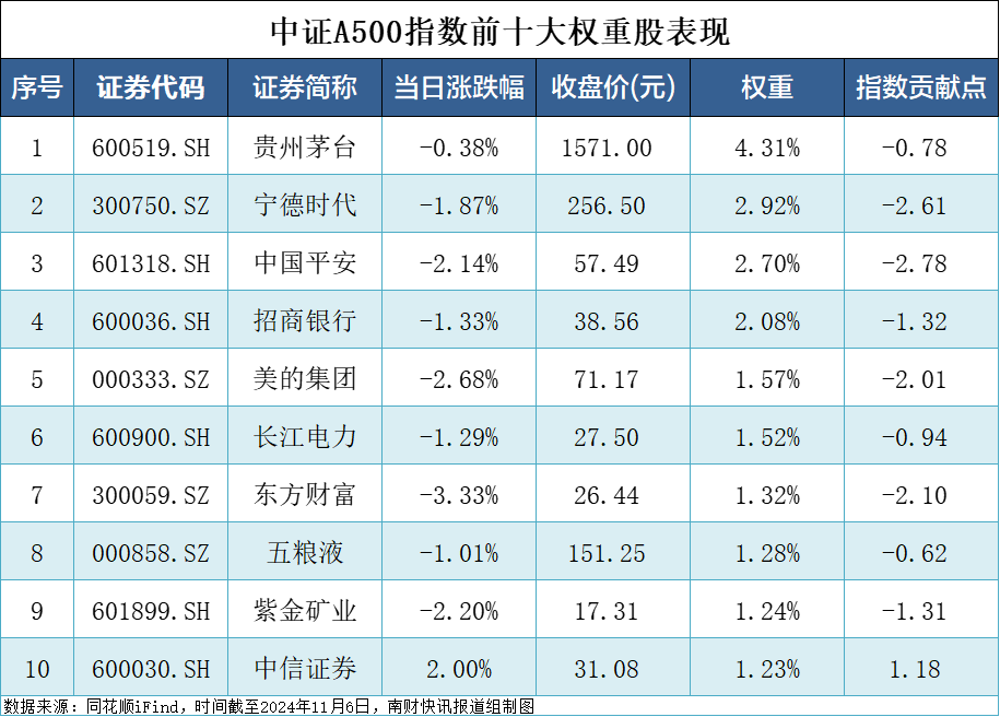 中证A500指数前十大权重股表现