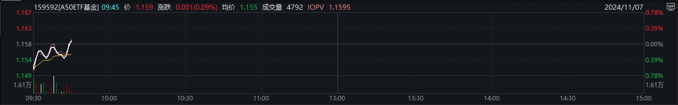 相关ETF方面,A50ETF基金(159592)早盘低开后盘中迅速翻红,截至发稿上涨0.09%,成交额超2800万元,换手率0.70%,开盘后交投活跃。