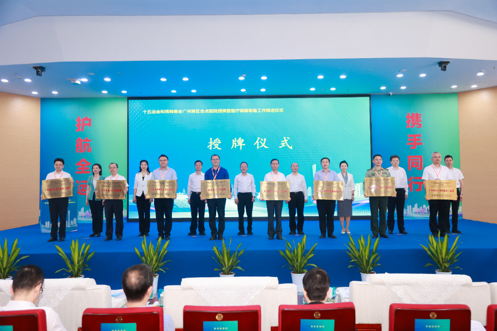11月6日,“护航全运 携手同行”——十五运会和残特奥会广州赛区57家定点医院授牌暨医疗保障筹备工作推进仪式在广州医科大学附属中医医院举行。
