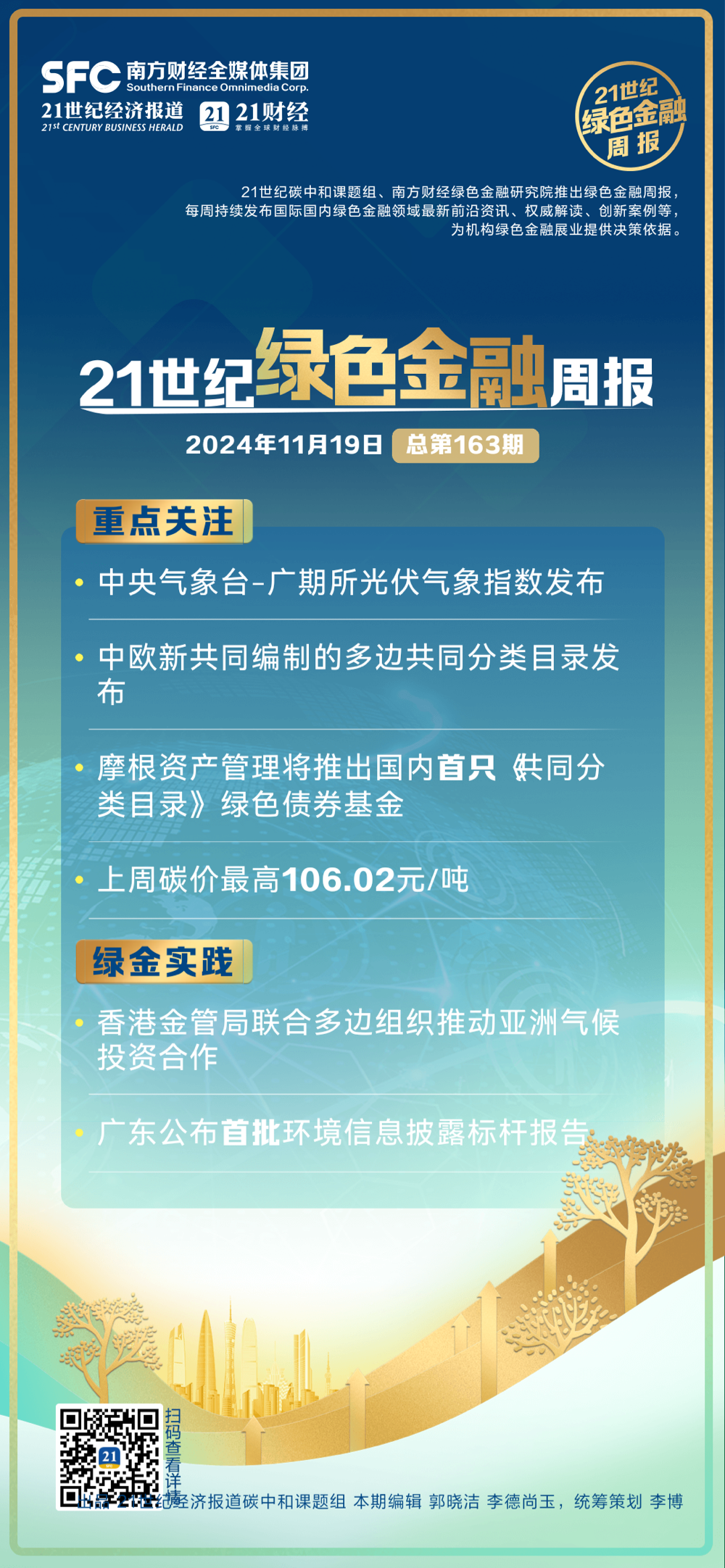 随着绿色金融市场的快速发展,相关的资讯和数据变得越来越丰富。绿色金融周报从宏观视角和机构绿色金融实践等角度,关注绿色金融领域的最新前沿动态,追踪绿色金融市场的最新趋势,为绿色金融相关参与方提供决策依据和参考。