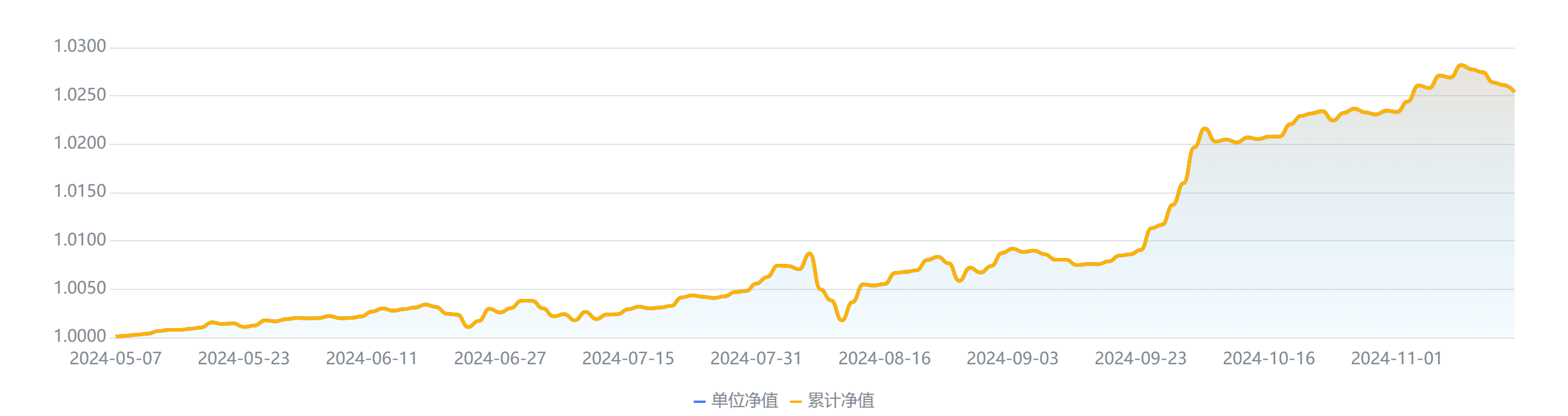 (图:“宁享固定收益类甄选日开1号”成立以来净值,图片来源:南财理财通)