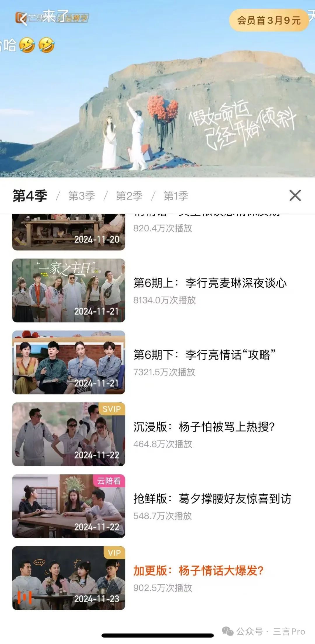 截至目前,该节目已经上了20个付费视频,而且节目还在播出中。