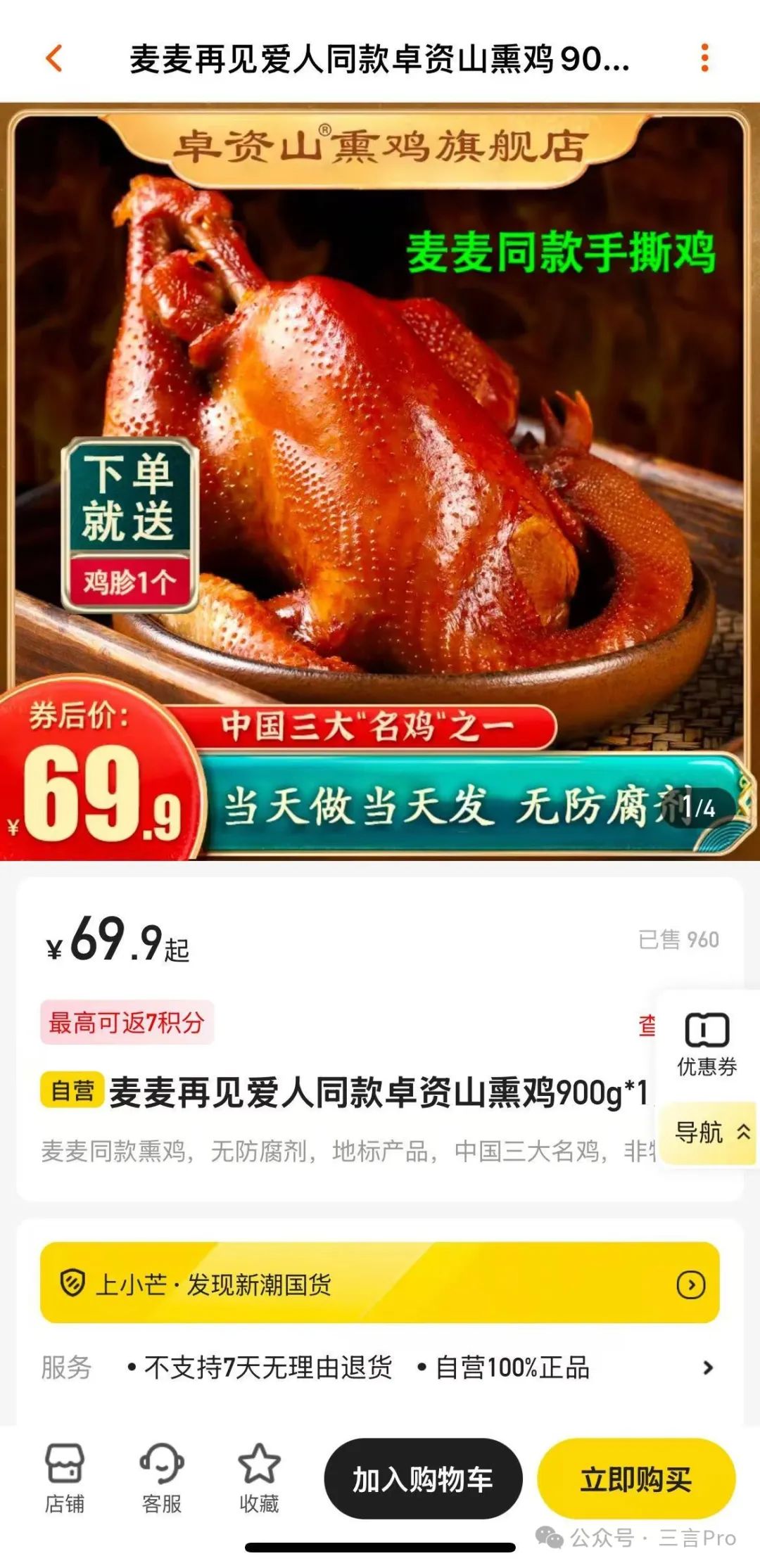 最出圈的熏鸡显示销售了960份。
