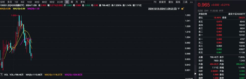 资金流向上,Wind数据显示,该ETF已连续3个交易日获资金净流入,近10个交易日累计 “吸金” 近54亿元。截至11月25日,该ETF最新流通规模106.06亿元,最新流通份额110.15亿份,均创成立以来新高。