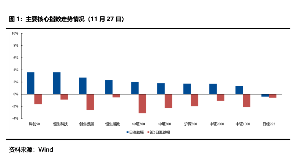 今日科创50、恒生科技、创业板指走势排名靠前,日涨跌幅分别为3.61%、3.61%和2.73%;近5个交易日恒生指数、日经225、恒生科技的走势排名靠前,近5日涨跌幅分别为-0.52%、-0.57%和-0.88%。