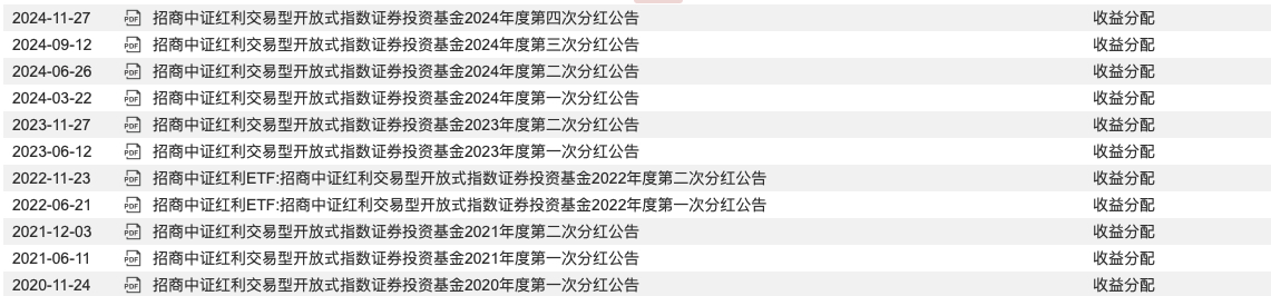 11月27日,中证红利ETF(515080)发布2024 年度第四次分红公告,本次计划每十份分红0.2元,权益登记日为2024年11月29日。