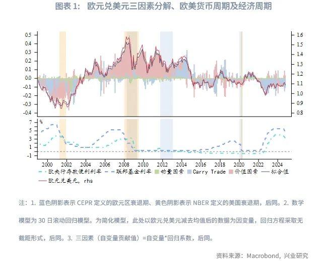 参考高盛资管(GSAM)为G10货币汇率构造的carry trade(套息交易)、trend(趋势)、value(价值)三项指数,本篇将针对主要欧系汇率——欧元兑美元、英镑兑美元、欧元兑英镑进行三要素分解。如我们在《兴业研究汇率报告:美元指数三因子分析:价值、套息、动量20240909》中的阐述,套息因素主要反映利差与汇率的关系,价值因素基于购买力平价理论,动量因素体现市场短期交易行为惯性。本文将尝试寻找描述欧元、英镑汇率三要素的合适指标,并从该角度考察其运行规律。