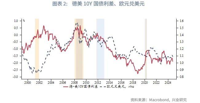 套息因素方面,我们用10年期德国国债和美国国债利差大致代表以欧元和美元为两端套息交易的吸引力。金融危机后,欧元区长期低利率的状态吸引了以欧元为融资端套息交易的兴起。尤其是欧债危机往后,欧央行利率水平低于美联储,欧元兑美元受carry trade因子影响强化。2022年欧央行强势加息退出负利率后,尽管欧元融资成本增加,但美德利差依旧保持在历史高位,carry trade因子仍有较强影响。