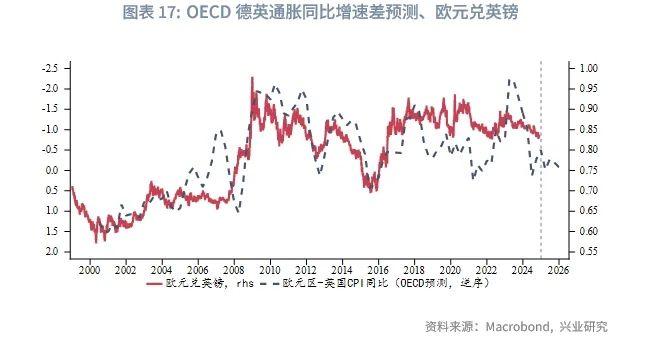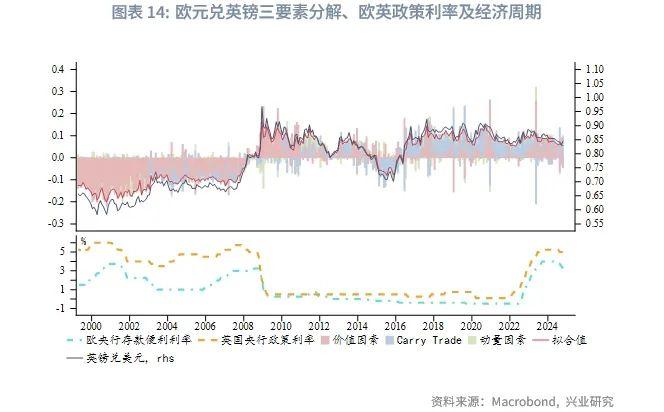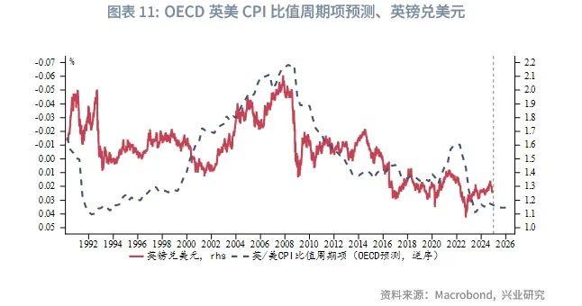 价值因素方面,以英国和美国CPI之比的周期项来描述两个经济体之间的购买力平价,它是长期内英镑兑美元趋势的决定因子。根据OECD的预测,明年英镑相对美元中枢基本持平,因而相对欧元也有优势。