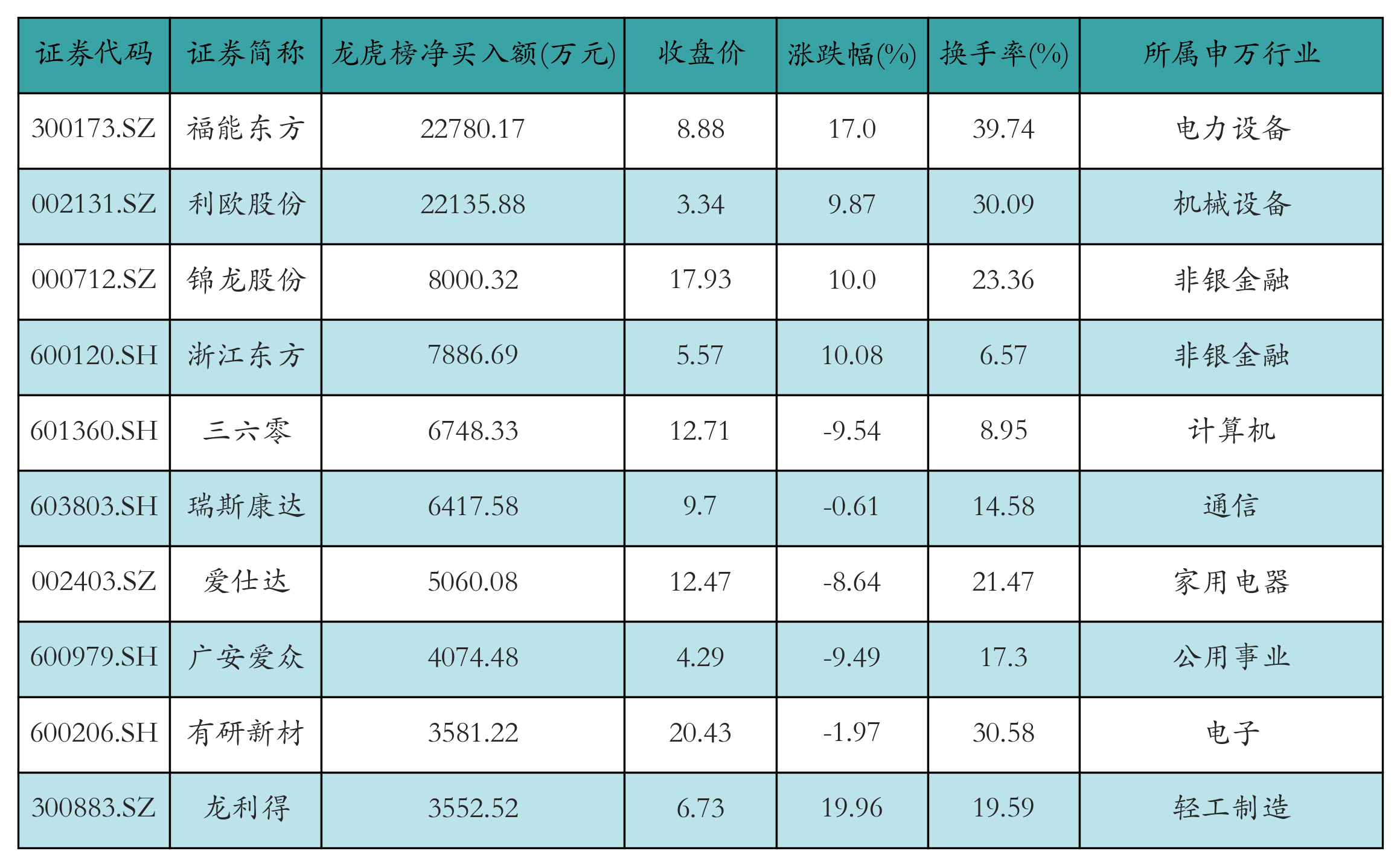 昨日龙虎榜营业部净买入额前10详情见下表: