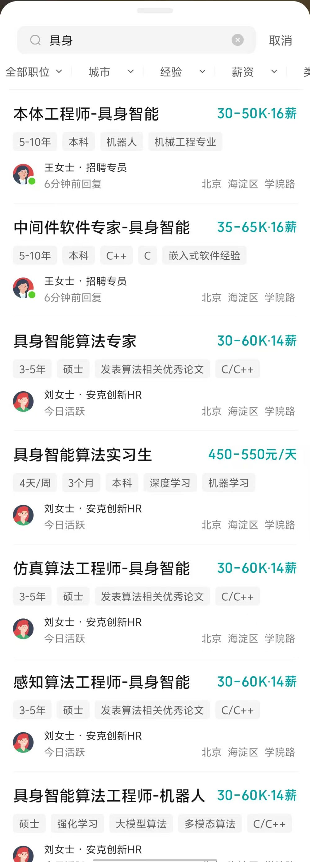 近日有市场消息称,消费电子出海大白马安克创新(300866.SZ)已经组建具身机器人团队。招聘平台显示,该公司正在招聘与具身智能岗位相关的职位,比如本体工程师、中间件软件专家、仿真算法工程师、感知算法工程师等,上述岗位薪资也颇为可观,30K/月起步。