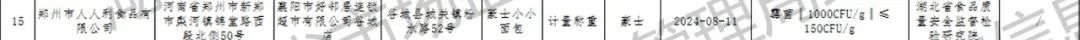 湖北省市场监督管理局发布的通告显示,1批次标称由郑州市人人利食品有限公司生产的“豪士小小面包”(计量称重,2024-08-11)被检出不合格,霉菌检测值为1000CFU/g,标准值为≤150CFU/g。