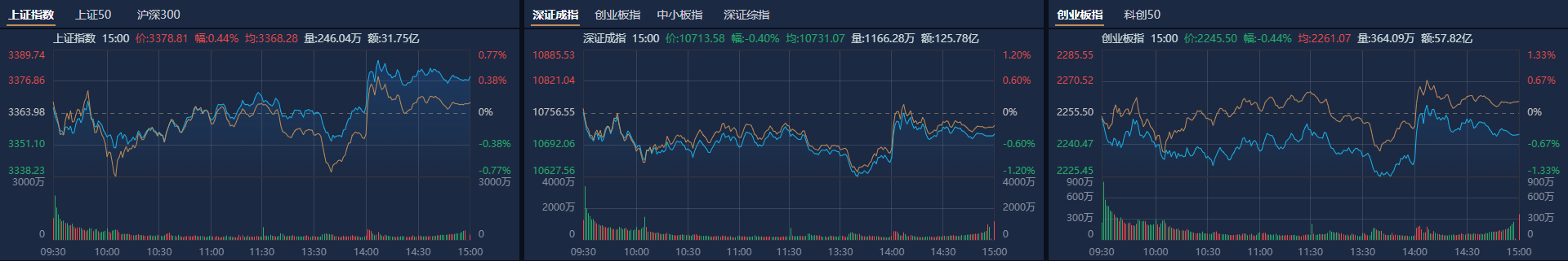 12月3日,市场全天震荡分化,沪指偏强,创业板指小幅调整。部分高位股尾盘炸板跳水,广博股份上演 “天地板” 。南财金融终端显示,截至收盘,沪指涨0.44%,深成指跌0.4%,创业板指跌0.44%。