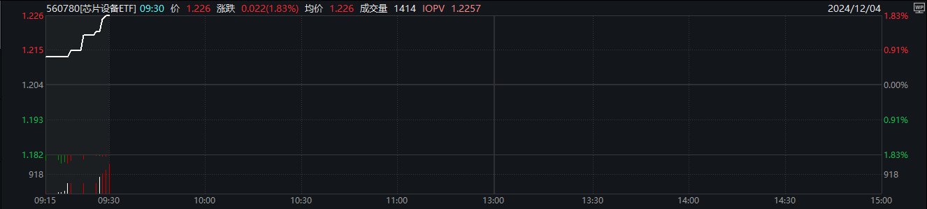 12月4日A股开盘,三大指数小幅低开,半导体板块逆市走强,中证半导体材料设备主题指数开盘上涨1.89%。