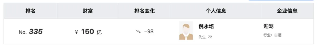 2024胡润百富榜上,董事长倪永培以150亿元身家,排名335位。12月4日收盘,迎驾贡酒的市值约485亿元。