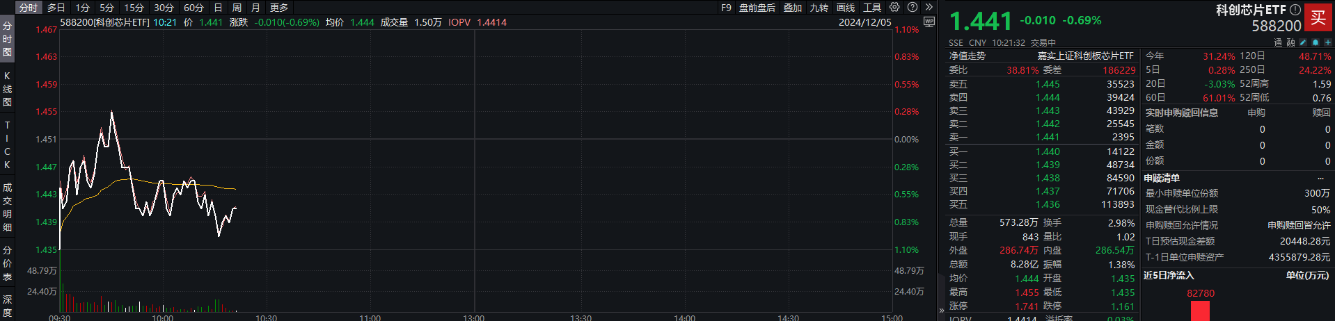 相关ETF方面,科创芯片ETF(588200)截至发稿跌0.69%,成交额超8亿元,换手率达2.98%。