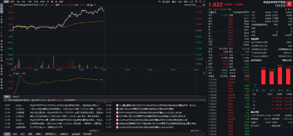 资金流向上,Wind金融终端最新数据显示,12月5日中证A500ETF华安(159359)再获超2.7亿元资金净流入。自本周一(12月2日)上市以来,该ETF连续四个交易日获资金净流入,累计 “吸金” 超10亿元。