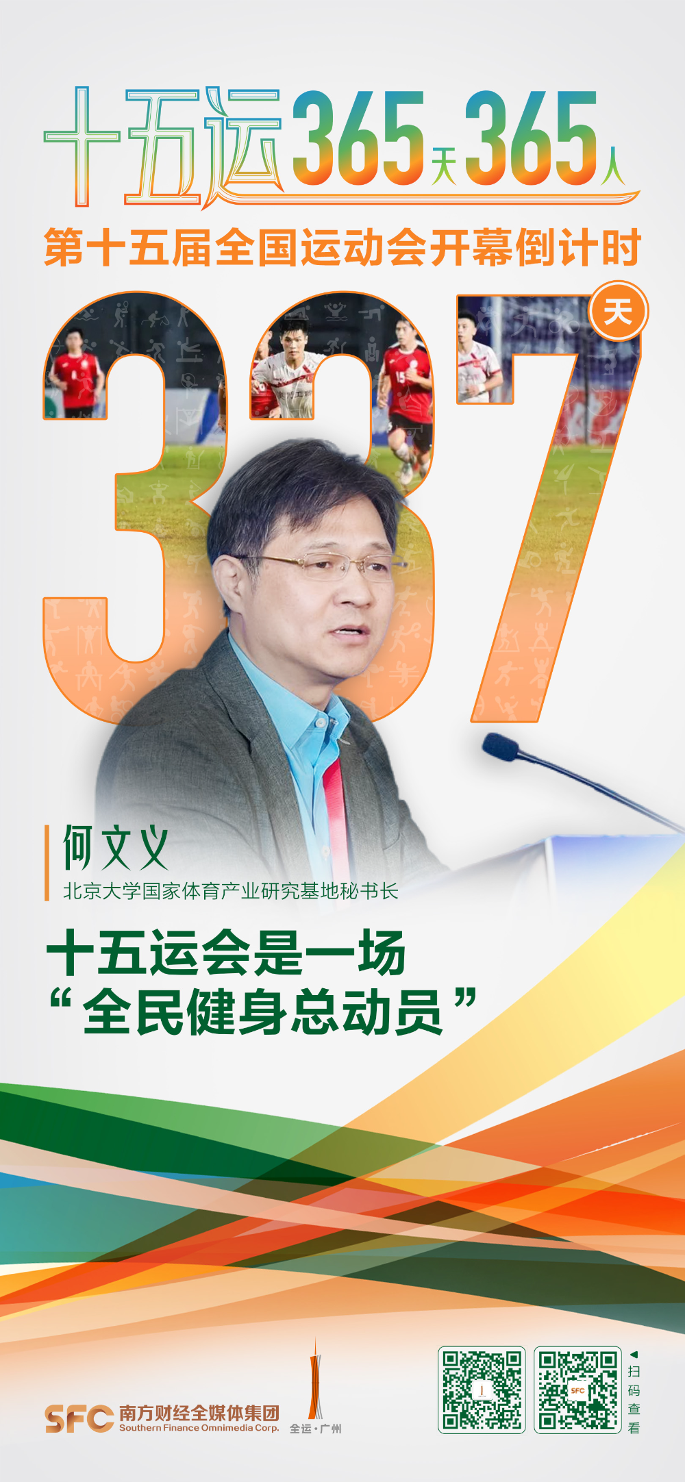 第十五届全国运动会将于2025年11月在粤港澳三地举行。这是一场体育盛会,更是推动全民健身、促进体育事业高质量发展的重要契机。南方财经全媒体集团与十五运会和残特奥会广州赛区执委会在十五运会开幕倒计时一周年之际,推出“十五运365天365人”专栏,聚焦运动员、企业家、专家学者、体育爱好者及社会公众的全运故事与全运期待,让更多人了解和关注十五运,生动呈现我国体育精神、城市活力和文化魅力。