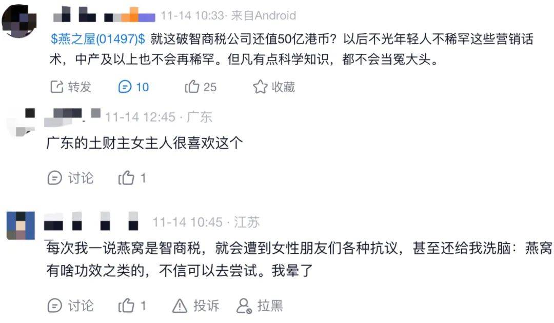 △社交媒体上,对燕窝是“智商税”的质疑声不断