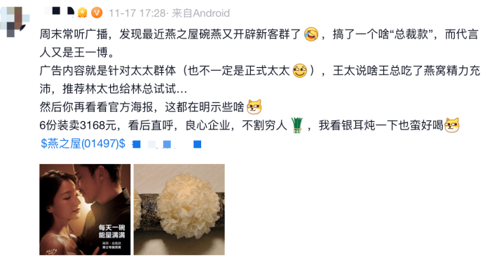 要真的摘掉“智商税”的帽子,燕之屋、小仙炖们应该做的是让燕窝回归普通消费品的属性,以价格力、产品力等来吸引消费者,而不是一味强调燕窝的滋补功效。