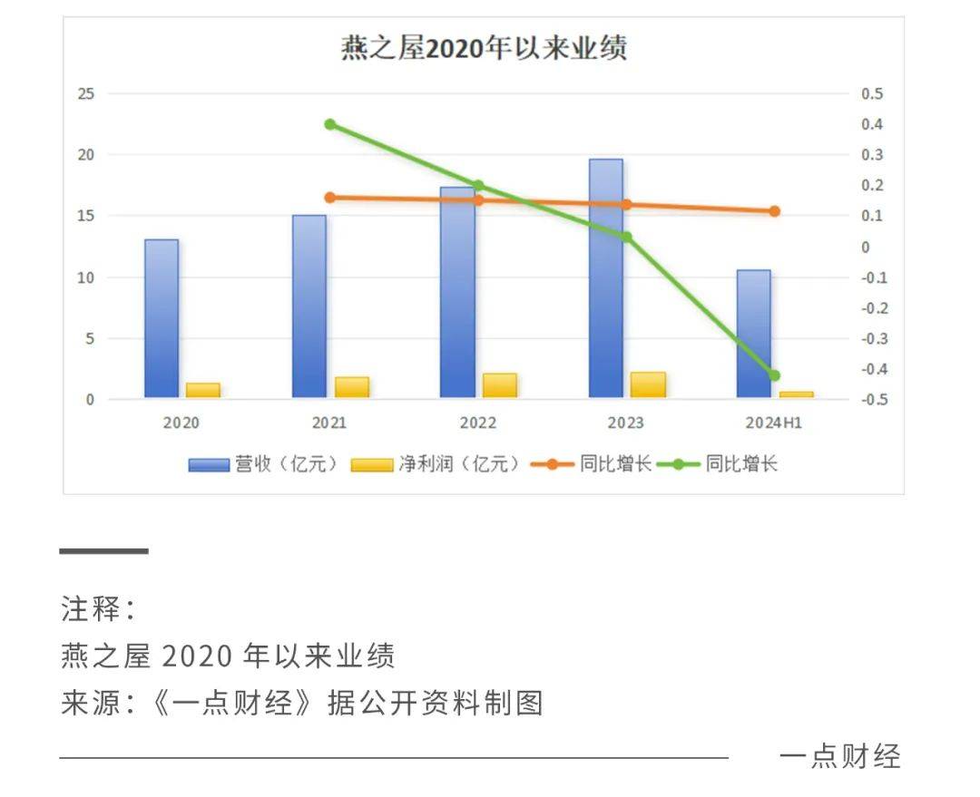 今年上半年,燕之屋的增速进一步放缓,营业收入10.59亿元,同比增长11.36%;净利润仅0.58亿元,同比下滑42.54%。