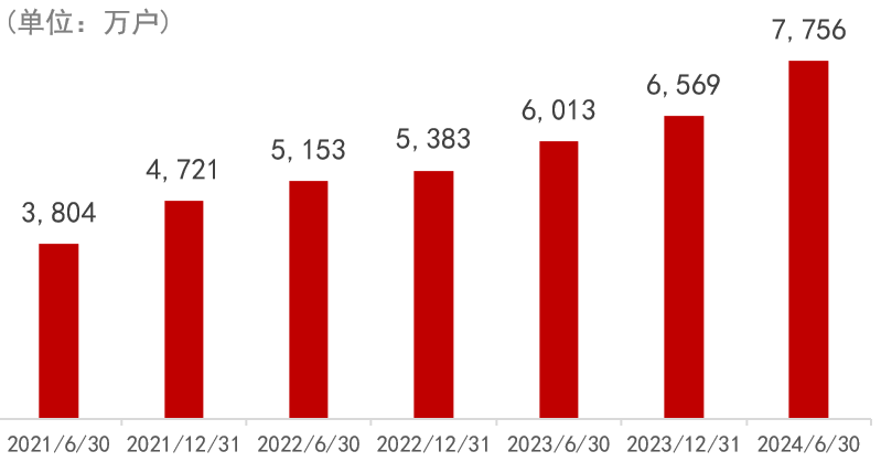 截至2024年中报,全市场共有2000余只纯债型基金,合计持有人数量达7756万户,相比2023年末增加了超1000万户,相比2022年末增加了超2000万户,创历史新高。