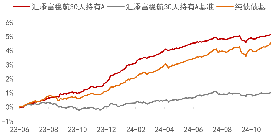 汇添富稳航30天持有债券能够成为超23万持有人的选择,离不开其亮眼的业绩表现。截至11月29日,汇添富稳航30天持有债券A(018420)自2023年6月20日成立以来累计收益率5.16%,创历史新高!同时超越同期纯债债基指数的4.56%,远超同期业绩比较基准的1.04%。