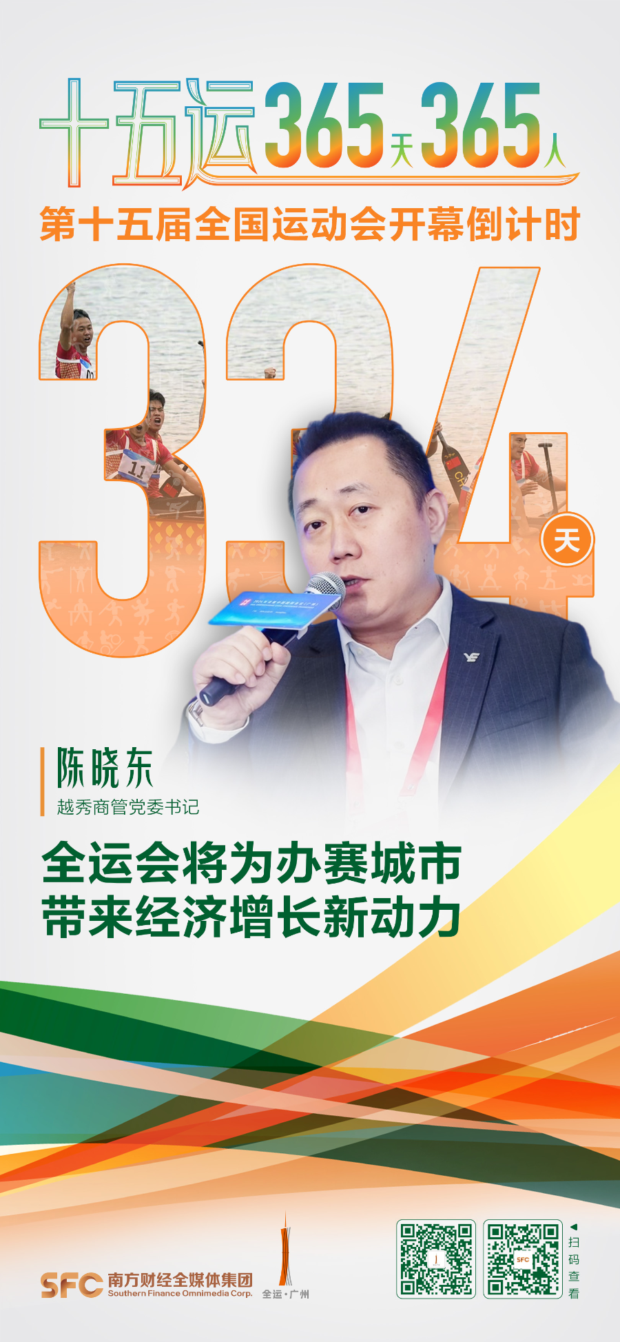 “这是粤港澳三地首次联合举办全运会,希望借此机会能够提升三地协同办事的效率,加强三方融合。”陈晓东表示,期待全运会引起社会更多关注,提振大湾区在中国经济中的份量,也为举办赛事的这些城市带来新的经济增长动力。同时,希望全运会通过体育赛事给广大群众传递竞争拼搏的精神,让大家更有信心穿越这次经济周期。