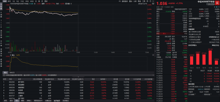 资金流向上,Wind金融终端最新数据显示,中证A500ETF华安(159359)上一个交易日获资金净流入近1.1亿元,自12月2日上市以来,该ETF已连续六个交易日获资金净流入,累计 “吸金” 超15亿元。