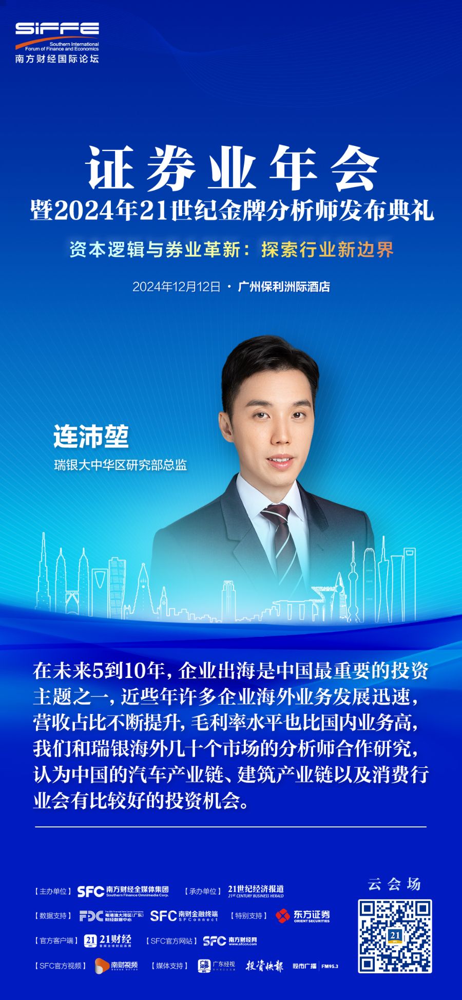 12月12日,由南方财经全媒体集团主办、21世纪经济报道承办的南方财经国际论坛2024年会在广州举办,以“资本逻辑与券业革新:探索行业新边界”为主题的证券业年会在同日举办。