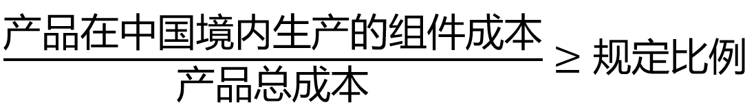 二是产品的中国境内生产组件成本达到规定比例要求,具体比例分产品确定并动态调整。