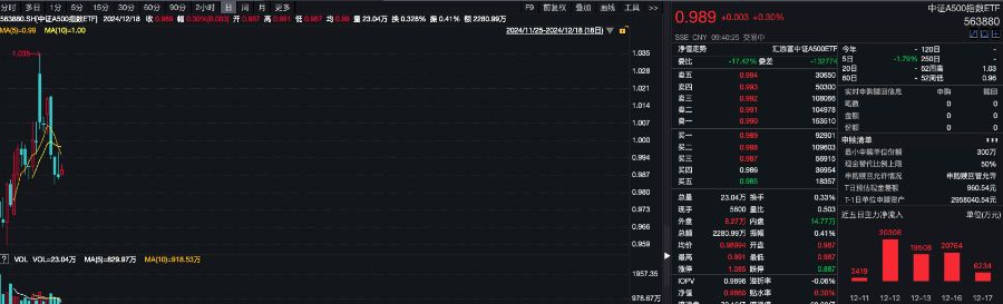 相关ETF方面,中证A500指数ETF(563880)截至发稿涨0.30%。