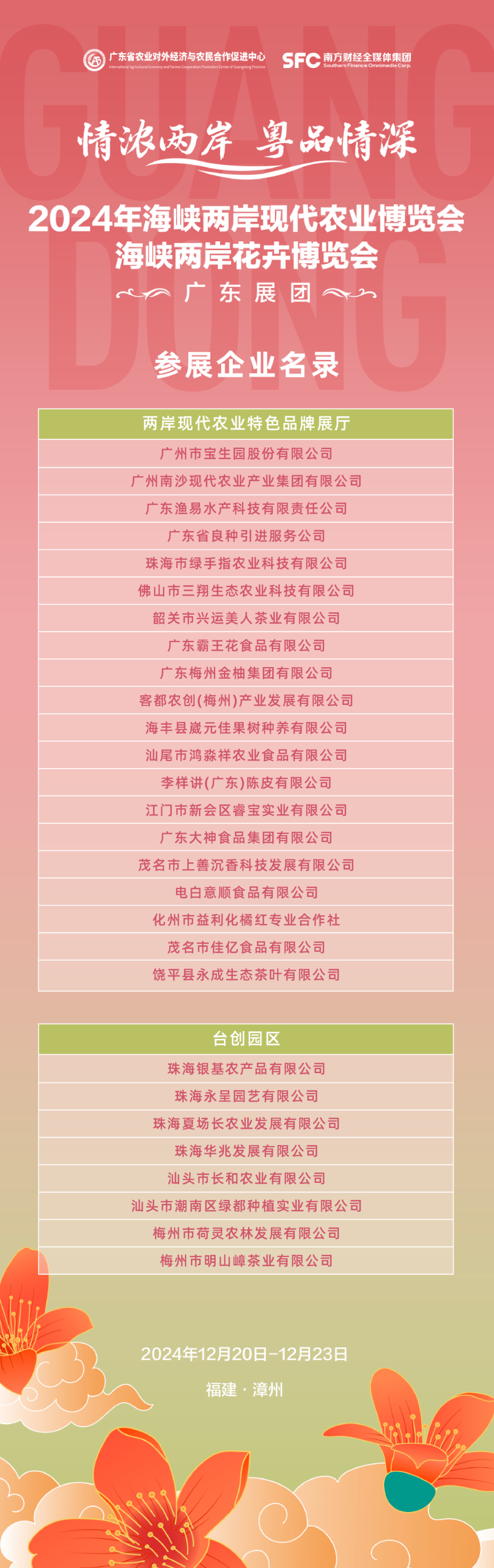 12月20日,2024年海峡两岸现代农业博览会·海峡两岸花卉博览会(以下简称“博览会”)将在福建漳州盛大开幕。
