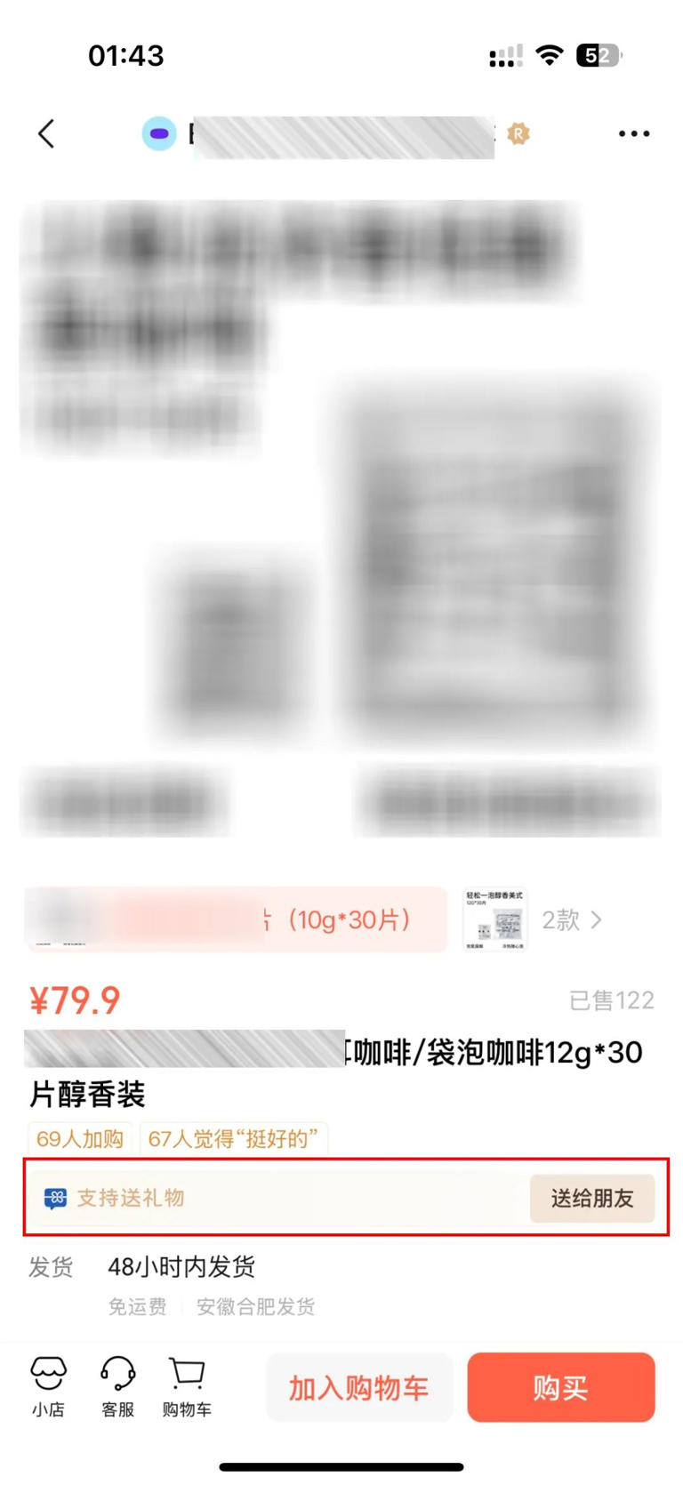 - 满足规则的商品/店铺将自动开通“送礼物”功能