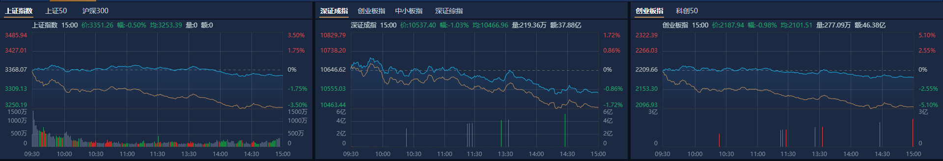 市场全天震荡走低,大小指数明显分化,微盘股指数跌超7%,全市场近4800只个股下跌,逾200股跌停。南财金融终端显示,截至收盘,沪指跌0.5%,深成指跌1.03%,创业板指跌0.98%。