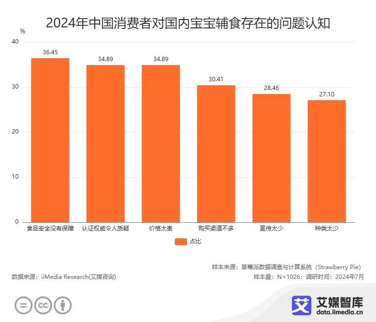 2024年中国消费者对国内宝宝辅食存在的问题认知
