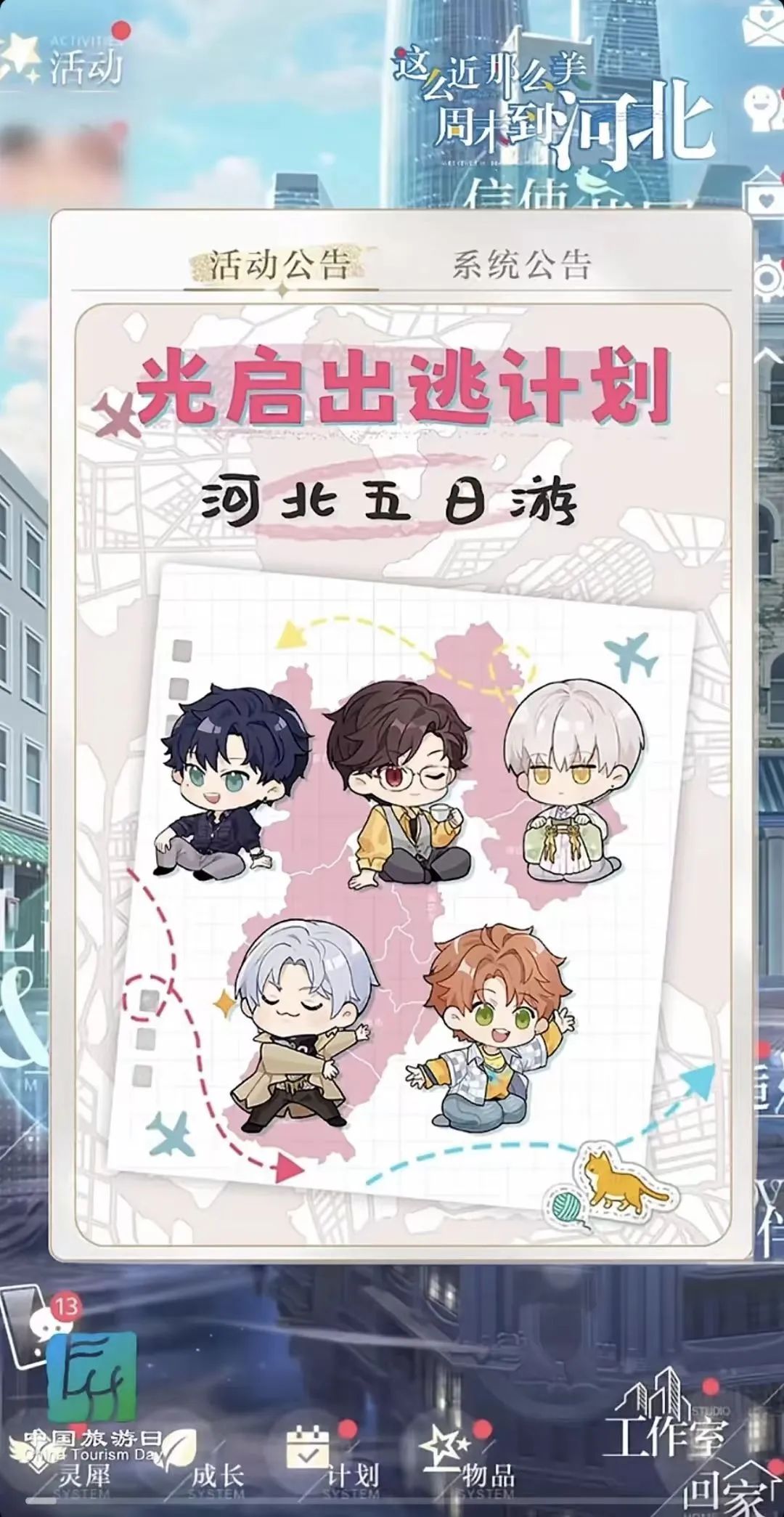 目前,国内二次元IP与文旅融合的项目处于蓬勃发展的态势,从主题公园、景区景点到特色小镇、文化街区等,二次元IP的身影随处可见。比如今年5月,光与夜之恋宣布“光启出逃计划——河北五日游”,为玩家推荐了五处河北的景点,在其他玩家还在花钱买周边的时候,有些玩家已经出门旅游了。