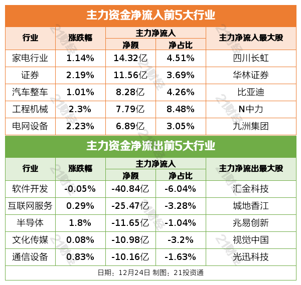12月24日,市场全天震荡反弹,三大指数均涨超1%。沪深两市全天成交额1.31万亿,较上个交易日缩量2232亿。