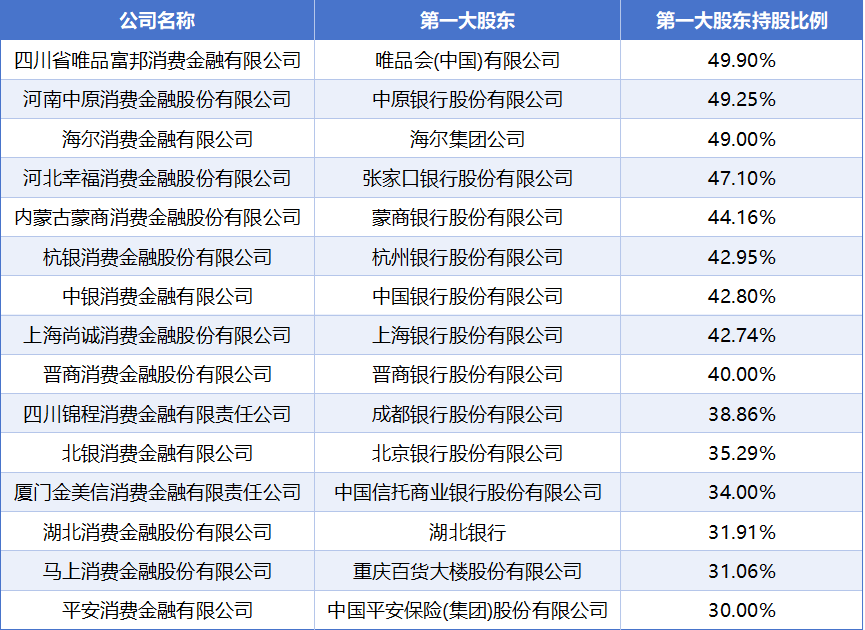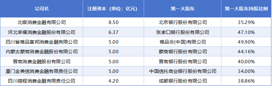 (注册资本、主要出资人持股比例均为达标消金公司名单)