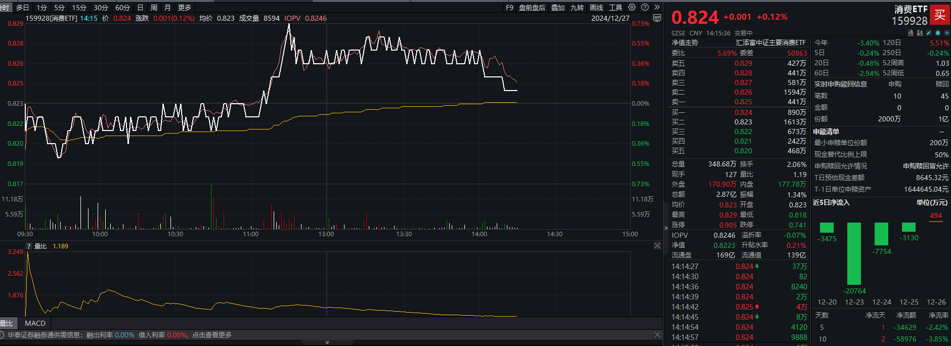 消费ETF(159928)紧密跟踪中证主要消费指数。该指数由中证800指数样本股中的主要消费行业股票组成,以反映该行业公司股票的整体表现。