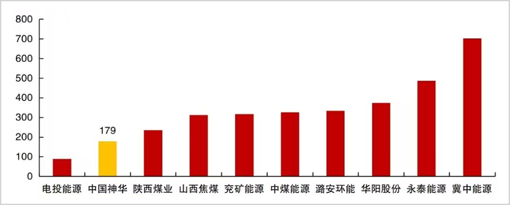 中国神华的优势是成本低,公司煤矿中露天矿占比达到40%,资源禀赋极高,吨煤开采成本在大型煤炭公司中遥遥领先,2023年仅有179元/吨。在此基础之上,中国神华的矿区又非常集中,公司于是通过煤运港一体化布局进一步将产业链利润留存在公司体内。各个环节加起来,中国神华的综合成本优势在业内无与伦比。