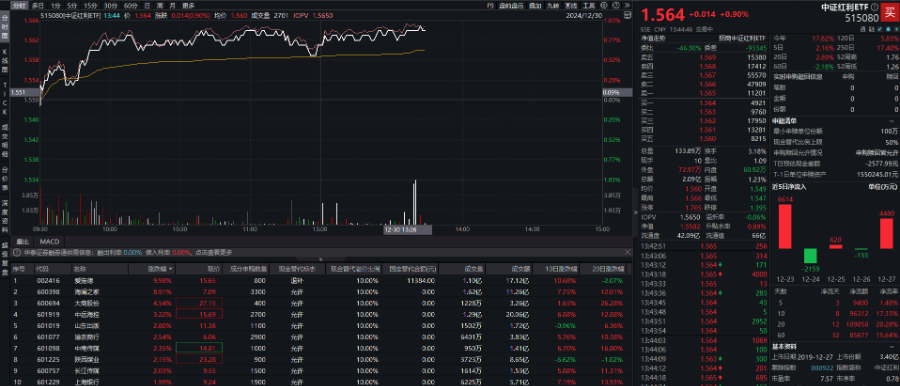 规模方面,Wind金融终端数据显示,中证红利ETF(515080)最新流通规模65.25亿元,最新流通份额42.09亿份。