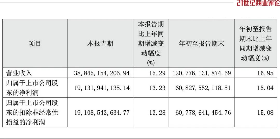 1-9月,茅台营收1207.76亿元,增长16.95个百分点;7-9月的增速,也稳在15.56%。