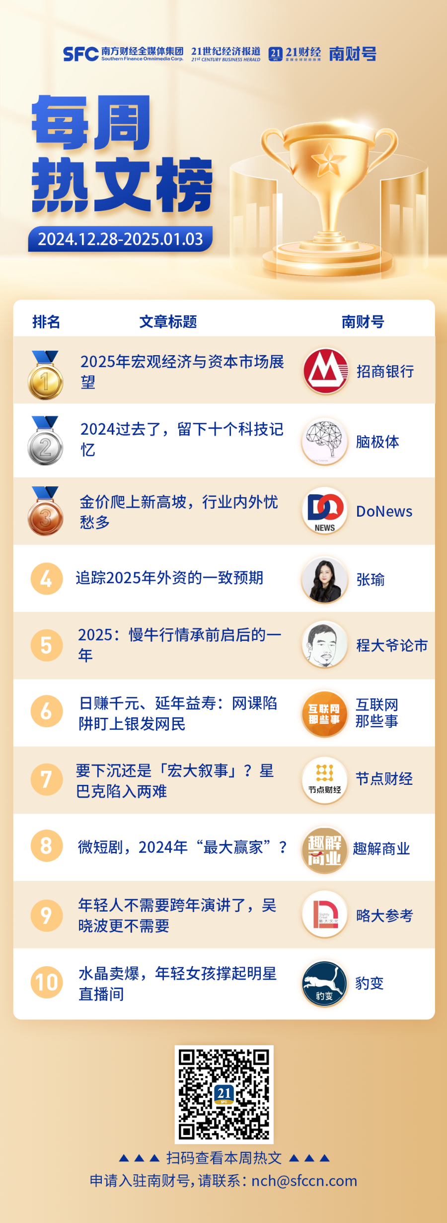 南财号每周热文丨2025年宏观经济与资本市场展望