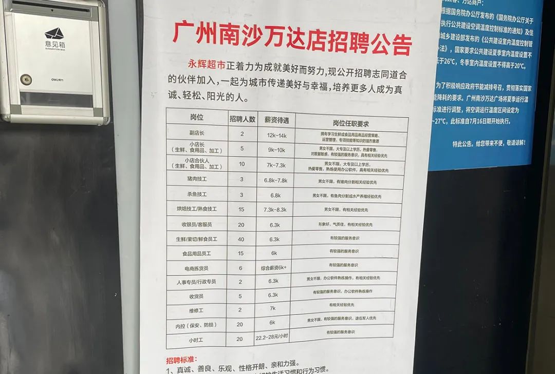 《21CBR》记者看到,该门店招聘岗位显示,从保安、拣货员、收银员、技工,薪资待遇在6000元至8300元之间。