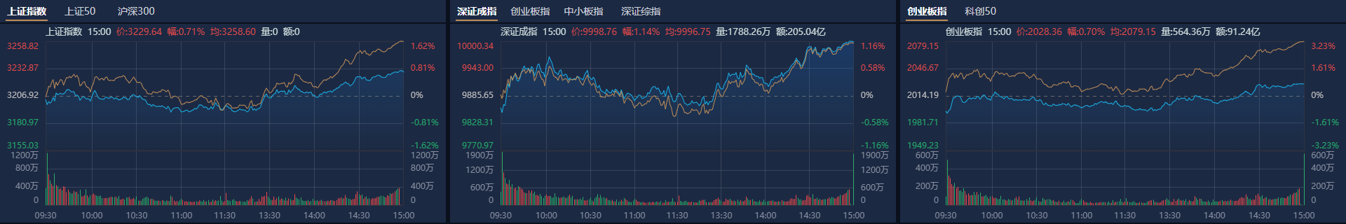 沪深两市全天成交额1.08万亿元,较上个交易日放量180亿元。
